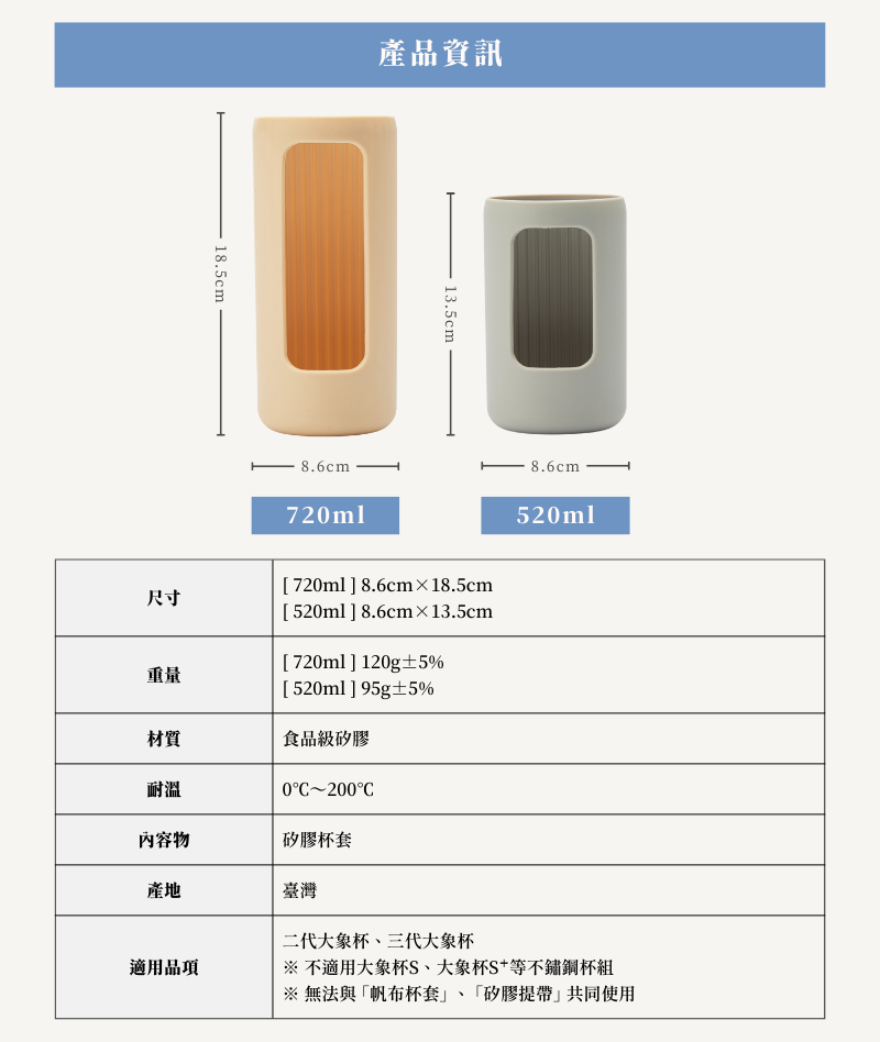 專為大象杯量身打造的矽膠杯套,手感溫潤細膩,減少冷飲導致杯身上的小水珠,