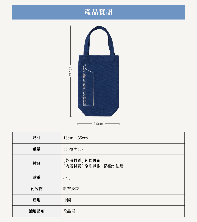 • 外層材質:100%純棉帆布