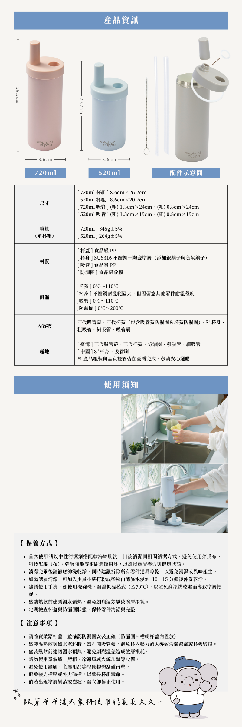 內容物: SUS316 不鏽鋼杯身+複合式陶瓷塗層(添加銀離子、負氧離子) 食品級PP 杯蓋&吸管蓋 食品級PP 粗吸管 & 細吸管 吸管蓋防漏圈 & 杯蓋防漏圈 吸管刷