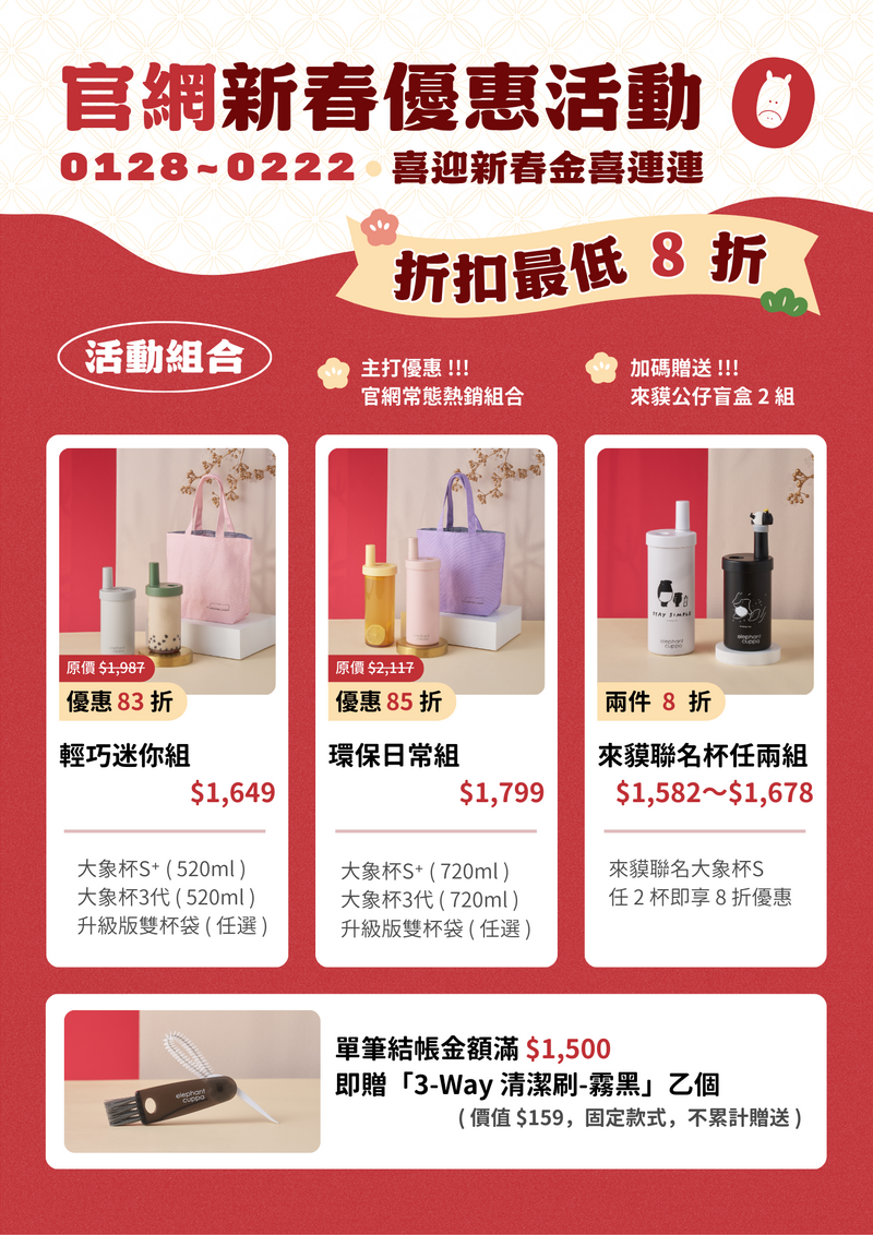 凡於大象杯官網或門市消費, 即可領取馬年開運紅包袋乙組! 已經送出破百組了 🔥 快把握限量機會 🤩