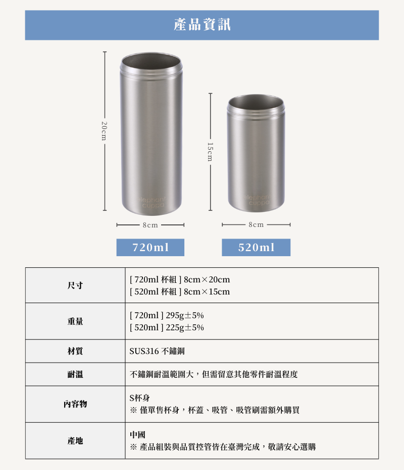 【新品上市】大象杯S⁺杯身-不鏽鋼原色