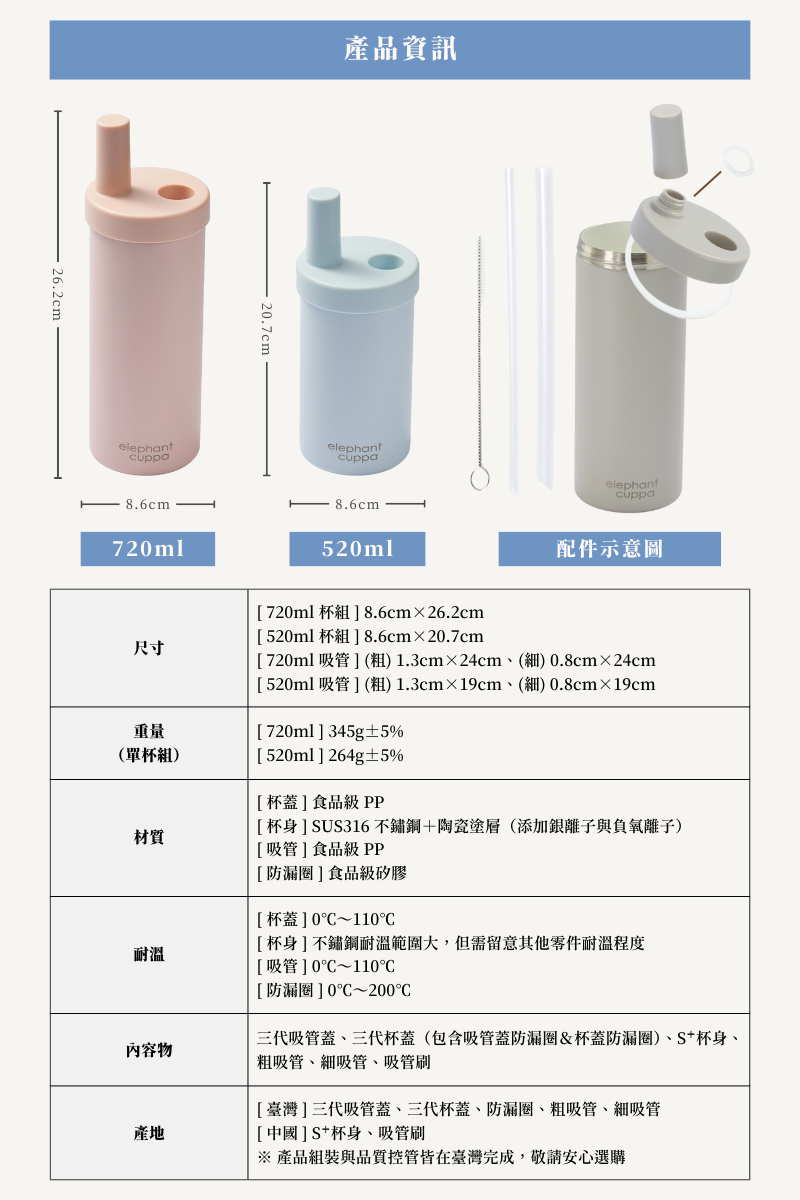 ・SUS316 不鏽鋼杯身+複合式陶瓷塗層(添加銀離子、負氧離子)