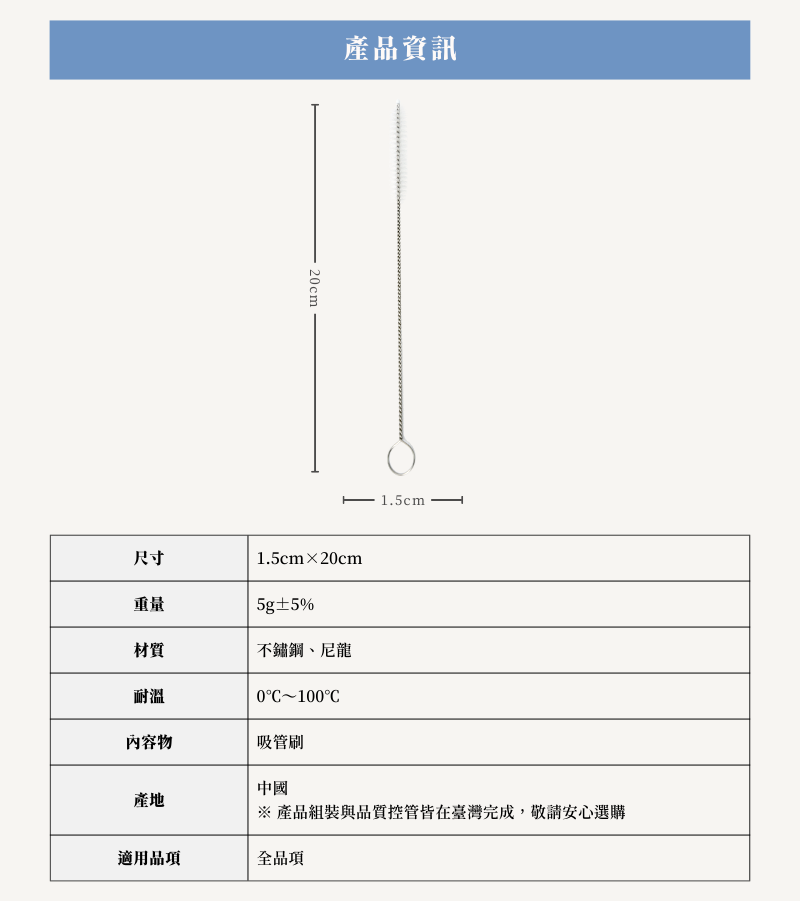 刷毛不脫落,棒身不生鏽,粗細吸管皆可使用,